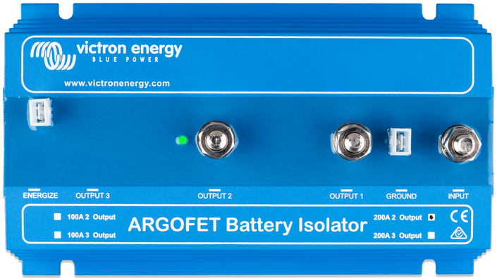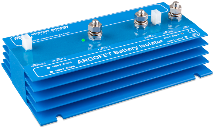 De Victron ARGO FET laadstroomverdeler is bedoeld om meerdere accu's te laden met één dymamo. In tegenstelling tot de normale diodebruggen heeft de FET een minimaal spanningsverlies (0,02V tot 0,1V). Daardoor worden uw accu's maximaal geladen zonder aanpassing aan de dynamo of acculader.