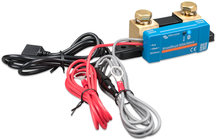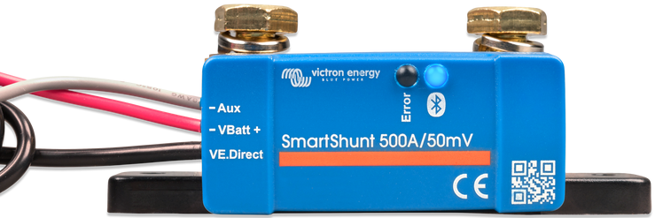 De SmartShunt is uitgerust met Bluetooth, een VE.Direct-poort en een hulpaansluiting die gebruikt kan worden om een tweede accu te bewaken, voor middelpuntbewaking of om een temperatuursensor aan te sluiten.