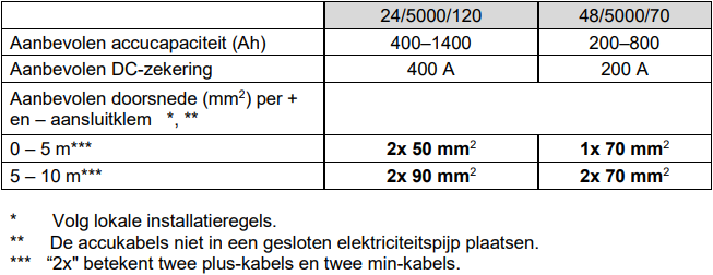 Tot zes Multi's kunnen parallel geschakeld worden om een groter vermogen te kunnen leveren. Zo kan met zes 24/5000/120 eenheden bijvoorbeeld een uitgangsvermogen van 25 kW / 30 kVA met 720 A laadvermogen worden bereikt.
