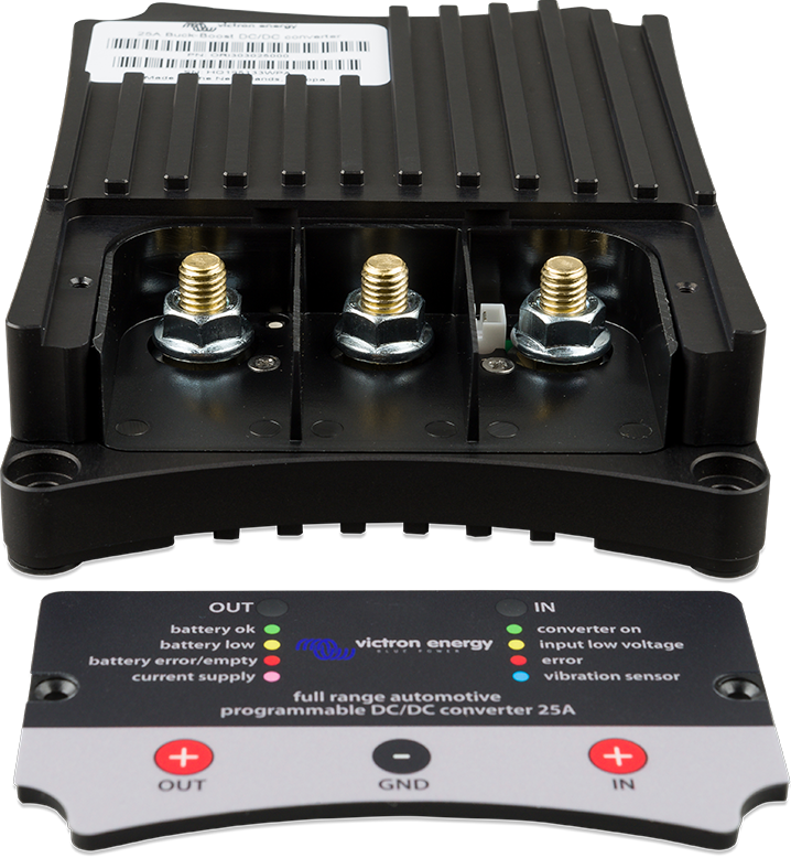 DC-DC omvormer voor het opladen van een 12V- of 24V-serviceaccu in voertuigen met een